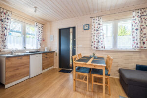 Nasze domki sa w pełni wyposażone - kuchnia, łazienka oraz sprzęt plażowy.